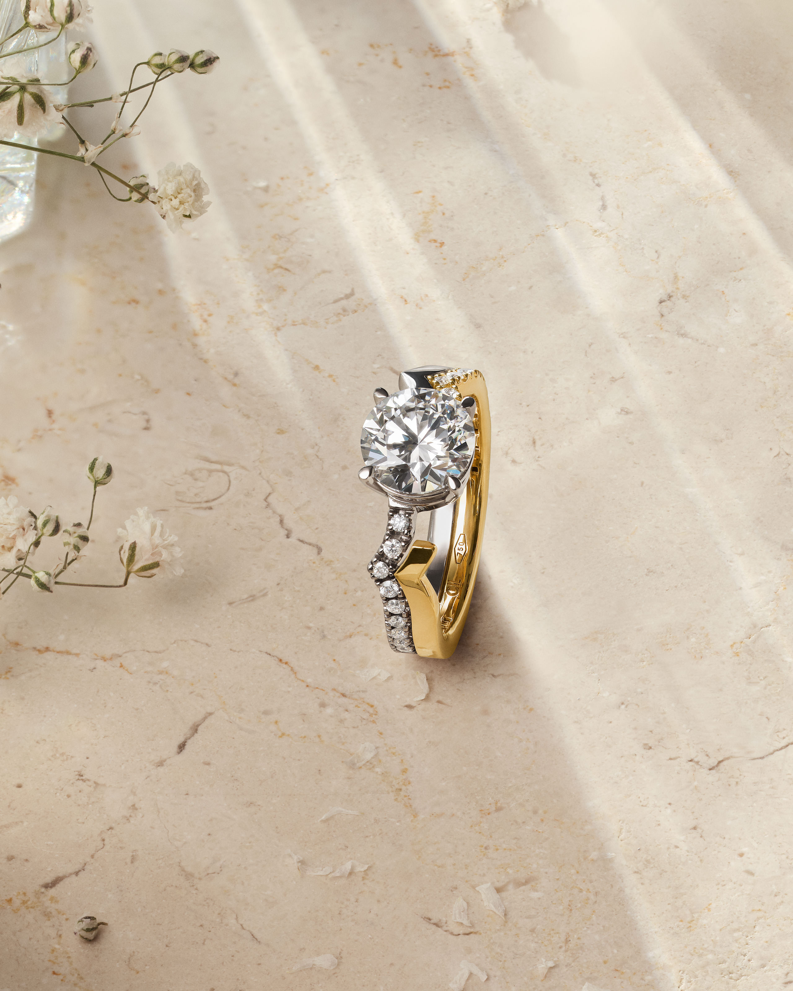 Crafted from 100% recycled ethically sourced 18-carat gold, Jeri Lunaire Ring features exceptional carbon-neutral diamonds, totaling 2 ct. Inspired by the fluidity of waves and the shimmer of sunlight, its design reflects natural grace and timeless brilliance.